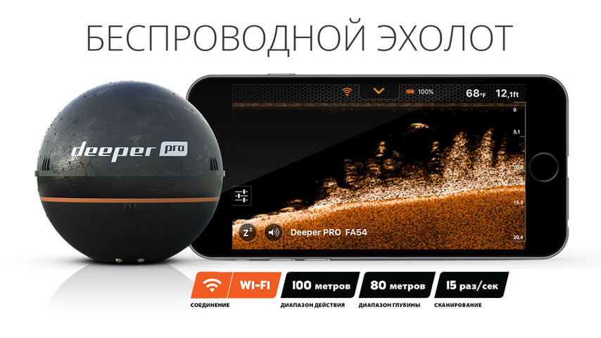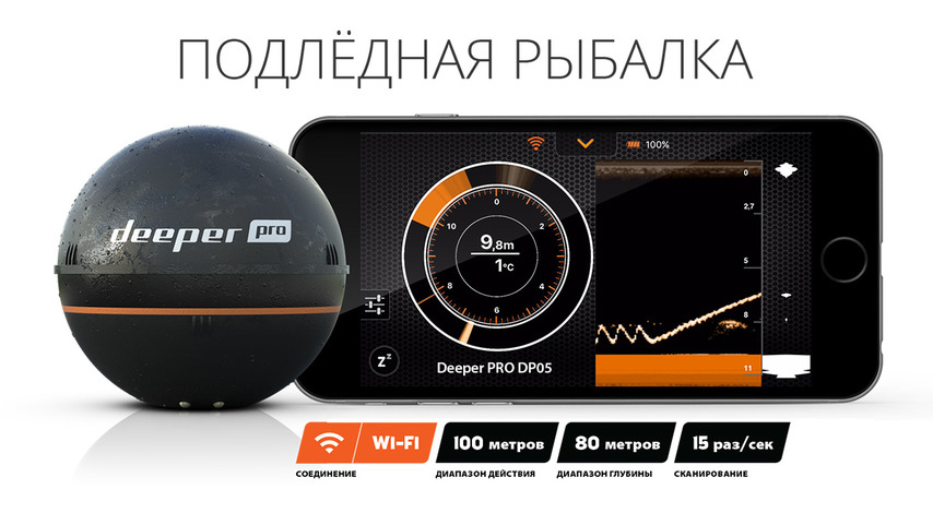 Эхолот Deeper PRO использует WI-FI для обеспечения увеличенной дистанции дальности соединения Deeper и устройства пользователя. Deeper плавает на поверхности сканирует дно водоёма и всю толщу воды под собой, фиксируя глубину, температуру, рельеф дна, расположение рыбы, а затем передаёт информацию прямо на экран смартфона или планшета.