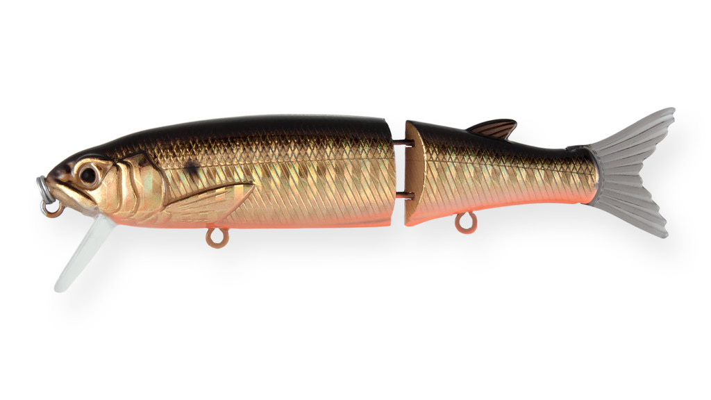 Составной воблер Strike Pro Glider состоит из двух сегментов, шарнирно соединенных между собой. Приманка с овальным, довольно упитанным телом вытянутой формы с отличной детализацией.