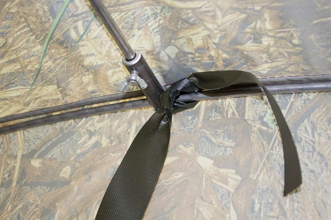 Установите внешний тент на каркас. Закрепите тент креплениями;