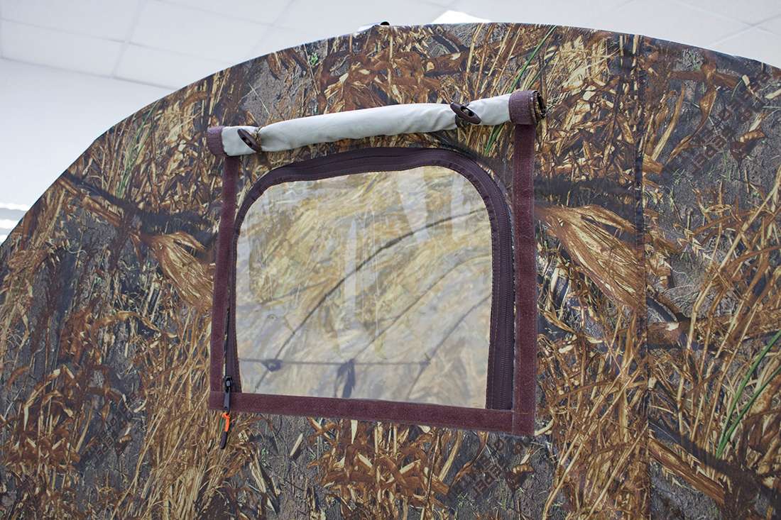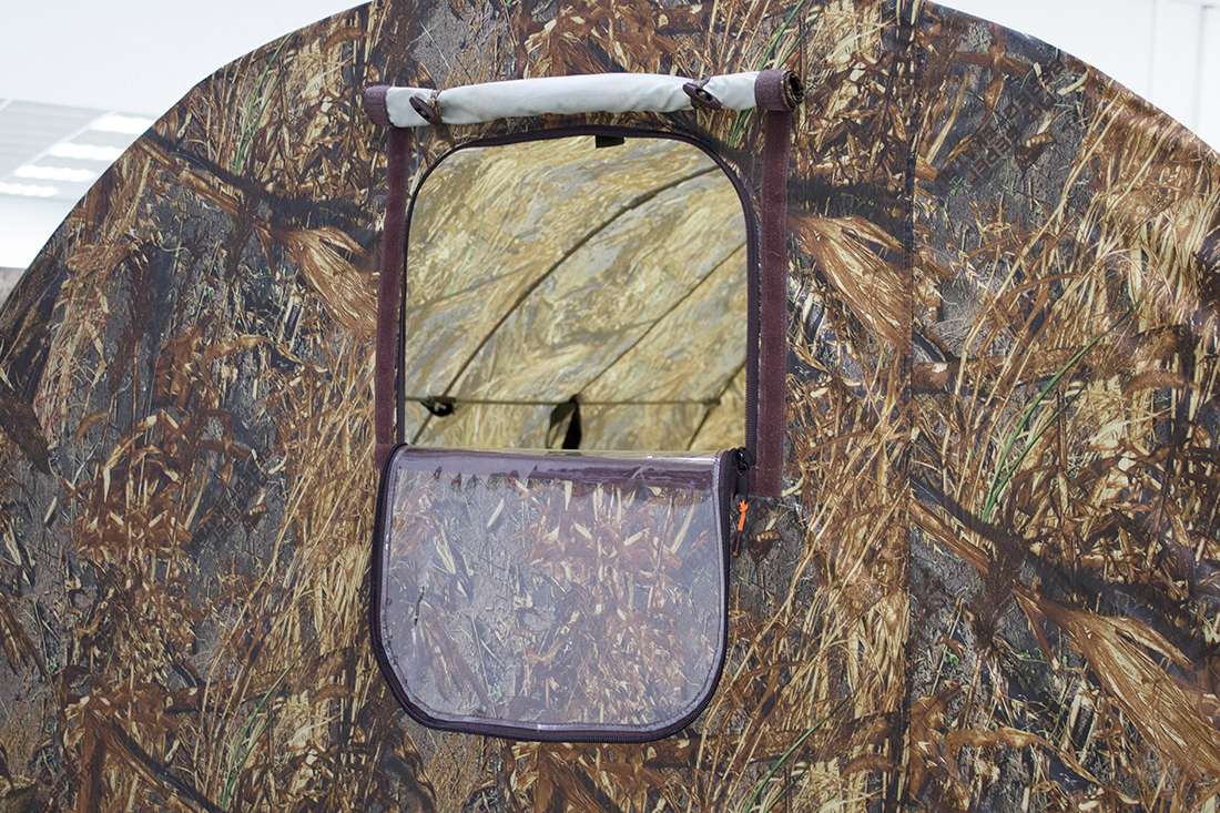 Палатка-баня ПБ-1 комплектуется распашной дверью, отверстием дымохода для установки печи, окном из пропускающего свет морозостойкого ПВХ.