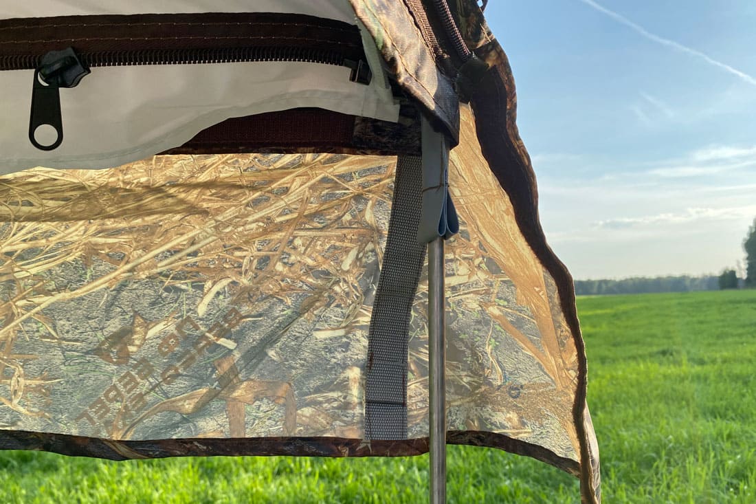 3. К стенке палатки москитная веранда крепится при помощи липы. К опорным стойкам крепление производится на небольшие липы.