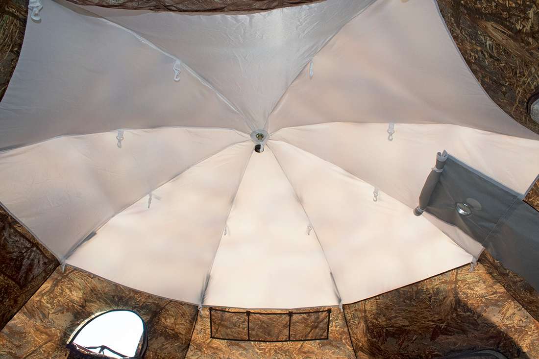 Внутренний тент оборудован съемным полом из ткани Оксфорд на молнии. Он пристегивается на 10 см выше земли, что предотвращает замерзание и попадание осадков и грязи.