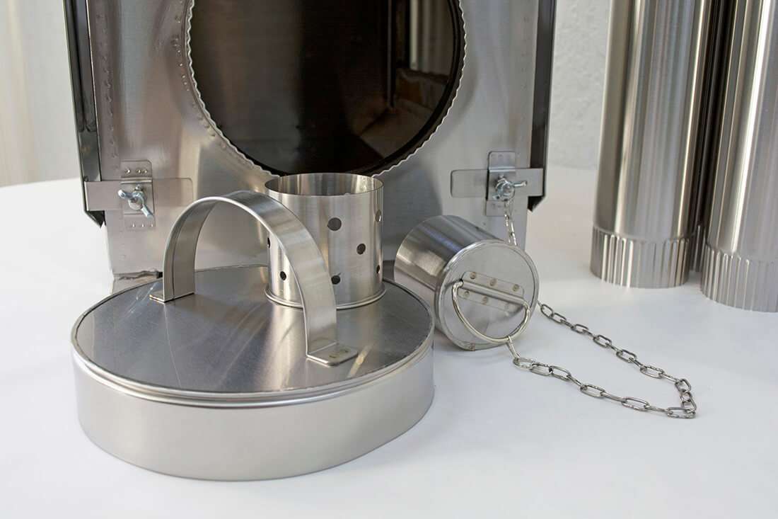 Искрогаситель встроен в верхнюю часть топки и делит ее на 2 камеры. В основной — нижней камере происходит горение и отдача тепла дровами или брикетами. В процессе горения происходит разделение топлива на летучие вещества и твердый остаток. Благодаря полному догоранию золы и летучих веществ в верхней камере происходит большая теплоотдача. Таким образом, за счет искрогасителя возрастает КПД печи, варочная поверхность нагревается равномернее, а дымоход нагревается меньше.