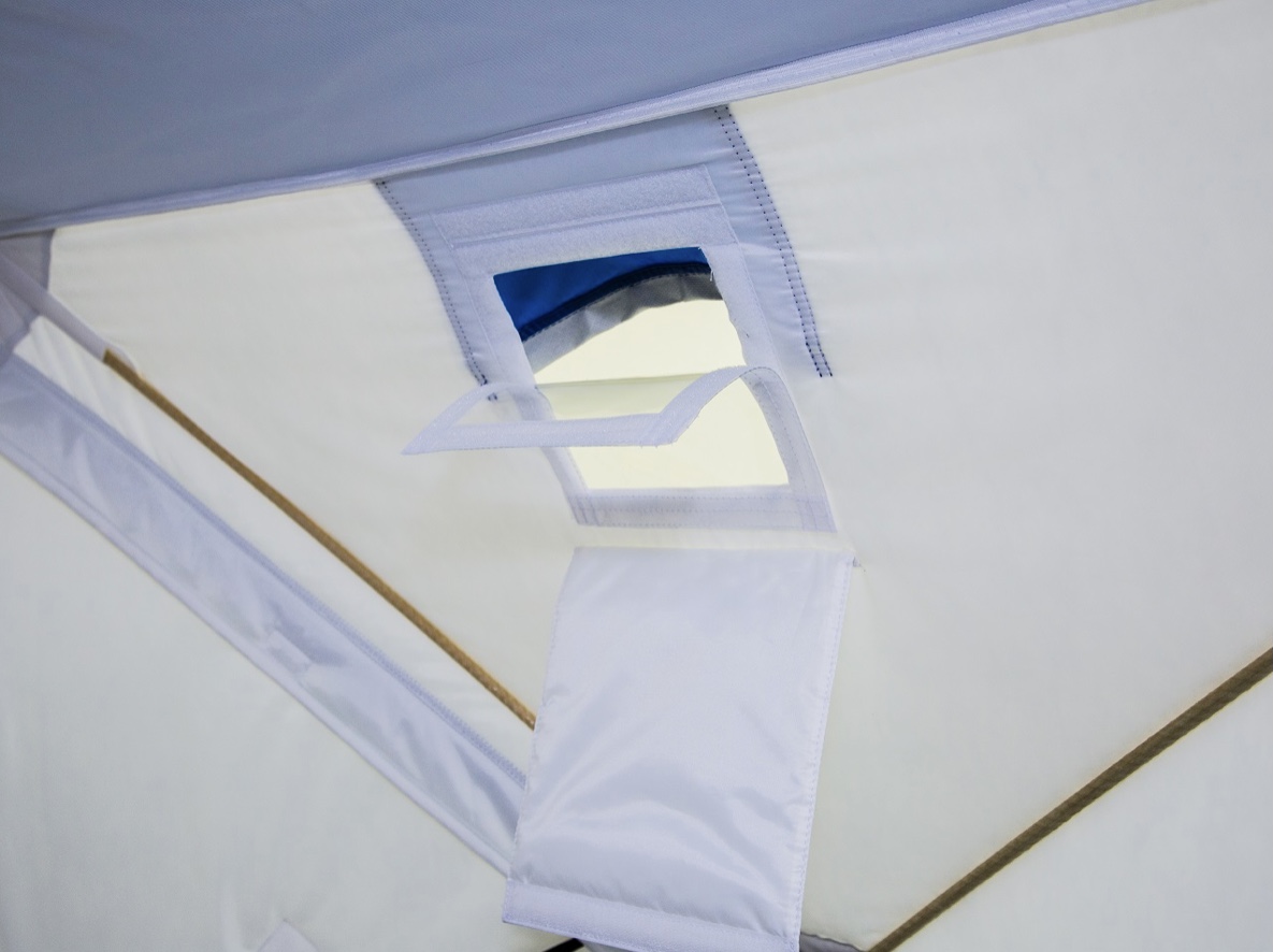 - Надежный трехслойный тент с воздушной прослойкой без дополнительной стежки и клея, что обеспечивает высокую сохранность тепла внутри палатки;