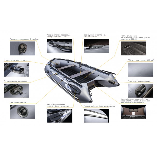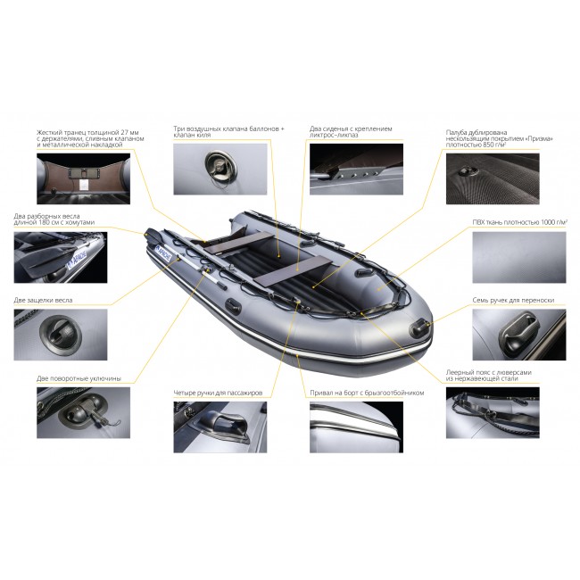 Характеристики товара: Лодка ПВХ Apache 3500 НДНД графит