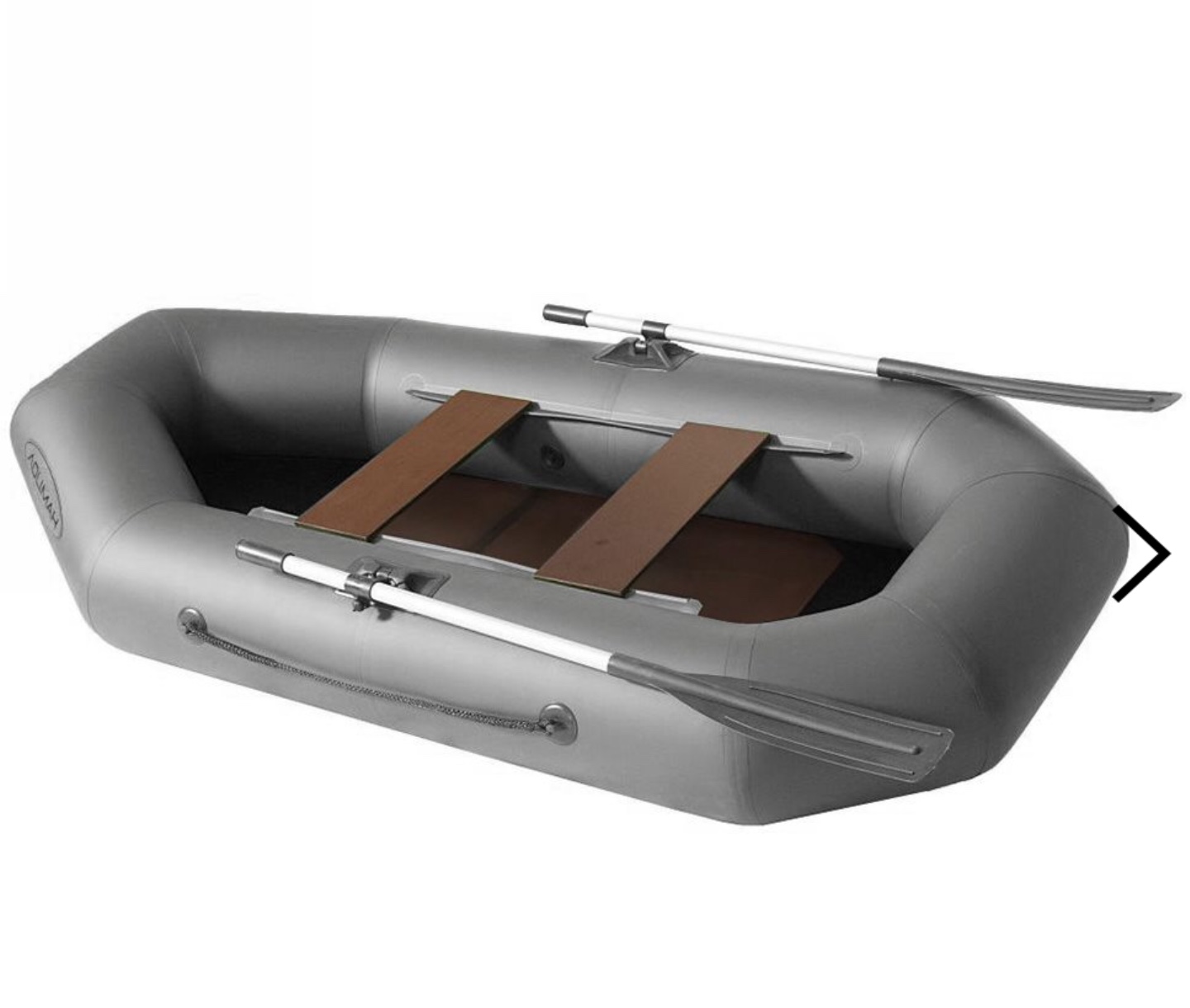 Вёсла выполнены из анодированных алюминиевых труб и снабжены передвигающимися хомутами для регулирования положения весла по длине относительно уключины. Благодаря этому создаются дополнительные удобства гребцу. Съёмная лопасть весла выполнена из полипропилена. Уключина изготовлена из нержавеющей стали.