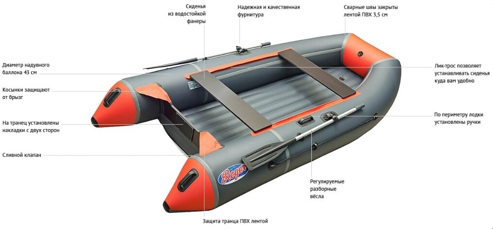 Универсальность: Лодка подходит для использования как с веслами, так и под мотором (максимальная рекомендованная мощность двигателя – до 9.8 л.с.).