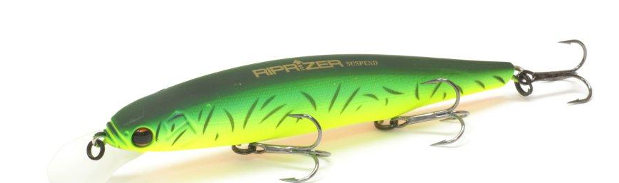 Крупный минноу – это отличный вариант для охоты на трофейную щуку или судака. Эти приманки своей игрой, которая лучше всего раскрывается на рывковой проводке, способны с большой дистанции привлечь внимание этих хищников. Длина представленной здесь модели равна 11,2 см при массе в 18 гр. Системы, отвечающей за дальний заброс, у этой приманки нет, но при такой массе и форме корпуса не составит труда доставить ее в нужную перспективную точку ловли. Плавучесть у Riprizer 110SP нейтральная. Это значит, что при паузе в проводке воблер будет зависать в своем рабочем горизонте. Для неактивного хищника, который выжидает удачного момента для нападения, это станет сигналом для атаки. Кроме игры и реалистичного внешнего вида данная приманка будет привлекать внимание хищника еще и шумовыми эффектами.