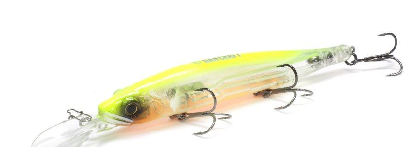 Воблер GanCraft Ayuja 128 Rest - это приманка высочайшего качества.Медленно всплывающий глубоководный минноу в несвойтвенном для этой фирмы небольшом размере и весе 128 миллиметров длиной и 21 грамм весом. В Ayuja128 Rest стоит магнитная система дальнего заброса с тремя довольно крупными шарами,последний из которых держится слабо и при твиче начинает перекатываться туда-сюда по каналу внутри тела воблера,придавая движениям приманки хаотичности на агрессивной рывковой проводке.Внешне Ayuja128 Rest вылизан до мельчайших деталей в свойственной GanCraftманере,три крючка,стоящие на приманке,мощные и очень острые.Воблер медленно всплывающий,загнать его можно до двух с половиной метров на адекватной толщины шнуре,причем он с первых же сантиметров проводки начинает круто лезть в глубину-есть подозрение,что модель будет держать свой рабочий горизонт до самого конца проводки.Довольно упорист из-за большой площади заглубляющей лопасти,на твичах и потяжках очень широко рыскает,при этом активно покачивая боками-словом,очень качественно сделанный минноу для облова глубоких участков водоема,обладающий отличными рабочими характеристиками