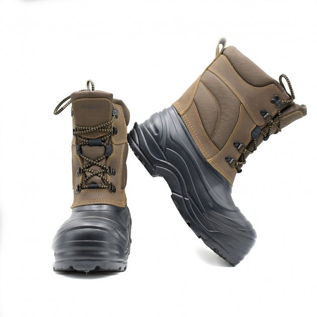 Дополнительные преимущества этого материала легкий вес; использование ткань что дышит; легкое содержание в чистоте - материал быстро высыхает.Нижняя часть сапог изготовлена из специального, супер легкого, термоизоляционного материала - полимера EVA, что обеспечивает защиту ног от замерзания. Есть съемный валенок из натуральной овечьей шерсти. Сапоги на шнурках, есть крючки блокираторы и современные шариковые петли для шнурков.