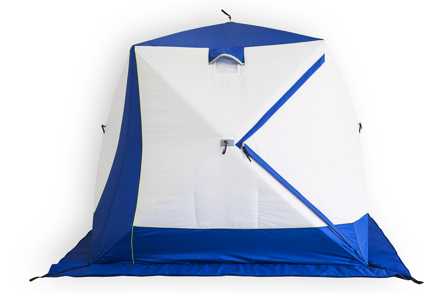 - Надежный трехслойный тент с воздушной прослойкой без дополнительной стежки и клея, что обеспечивает высокую сохранность тепла внутри палатки;