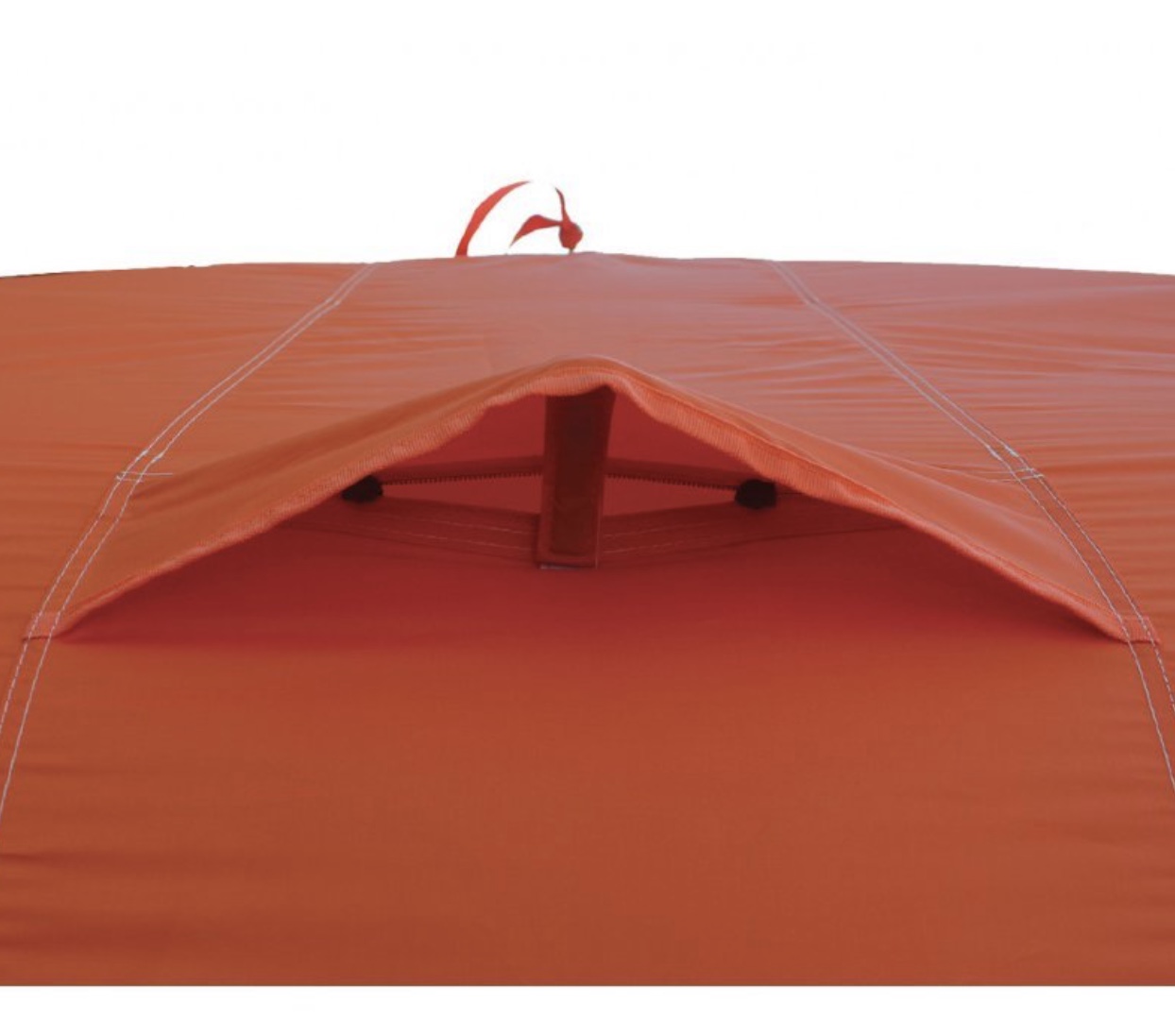 -Оригинальный дизайн наружного тента. Оранжевый верх купола палатки издалека виден днем и хорошо заметен ночью (при горящем фонаре)