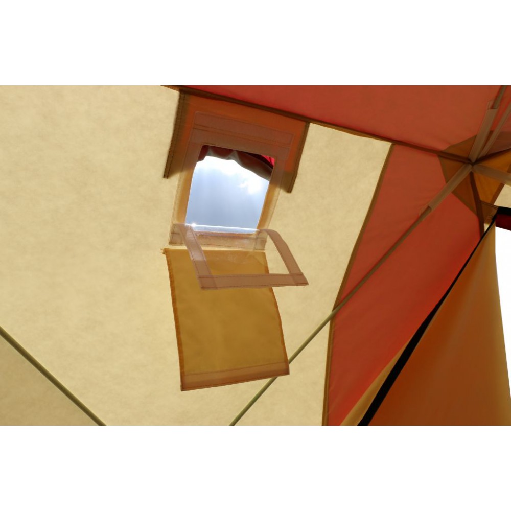 Каждая палатка оснащена вентиляционными окнами и клапанами приточной вентиляции.
